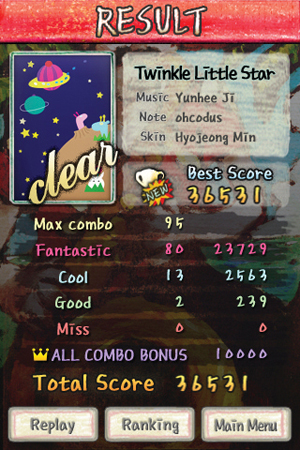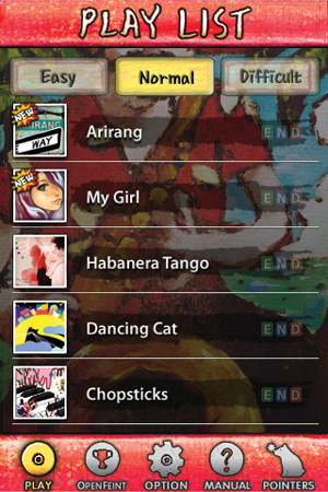 ¡ã ÃÑ 5°³ÀÇ Å°·Î Ç÷¹ÀÌÇÏ¸ç ¹è°æÀº ÇØ´ç À½¿øÀÇ À̹ÌÁö¸¦ »ç¿ëÇÑ´Ù. ´Ü¼ø ÅÍÄ¡ ³ëÆ® ¿Ü¿¡ ½ºÅ©·ÑÇÏ´Â ¹æ½ÄÀÇ Å°µµ ±¸ÇöµÇ¾î ÀÖ´Ù.