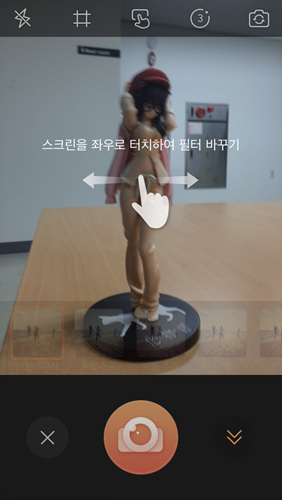 B612´Â ÅÍÄ¡ ±â¹ÝÀÇ ÀÎÅÍÆäÀ̽º¿Í ÇÔ²² ½Ç·Î ´Ù¾çÇÑ Á¾·ùÀÇ ÇÊÅ͸¦ Á¦°øÇϰí ÀÖ´Ù. ÇöÀç B612¿¡ Á¦°øµÇ°í ÀÖ´Â ÇÊÅÍ´Â ÃÑ 78°³·Î, ÀÌ¿ëÀÚ´Â ÀÌ ÇÊÅÍ Áß Çϳª¸¦ ÁöÁ¤ÇÒ ¼öµµ ÀÖ°í ·£´ý ¸Þ´º¸¦ ÅëÇØ Àüü ÇÊÅÍ Áß Çϳª¸¦ ·£´ýÇÏ°Ô Àû¿ëÇÒ ¼öµµ ÀÖ´Ù. µð¹ÙÀ̽º°¡ ¾Æ¿ôÆ÷Ä¿½º¸¦ Áö¿øÇÏÁö ¾Ê´õ¶óµµ ÀÚü ÇÊÅ͸¦ ÅëÇØ ¾Æ¿ôÆ÷Ä¿½ÌÀÇ ±â´ÉÀ» üÇèÇØ º¼ ¼öµµ ÀÖ´Ù.