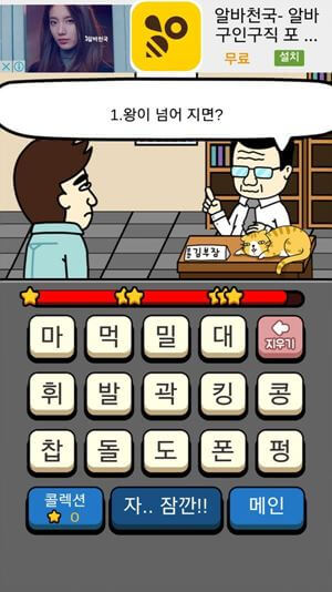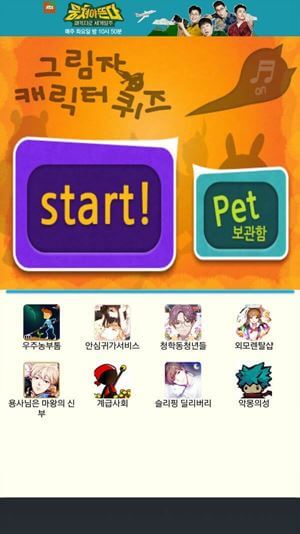±×¸²ÀÚ Ä³¸¯ÅÍ ÄûÁî´Â ¸¸È³ª ¿µÈÀÇ Ä³¸¯ÅÍ¿¡ ´ëÇÑ °ü½ÉÀÌ ¸¹Àº »ç¶÷µéÀ» À§ÇØ °³¹ßµÈ ¾ÛÀ¸·Î, »ç¿ëÀÚ°¡ ±×¸²ÀڷΠǥÇöµÈ À̹ÌÁö¸¦ ÅëÇØ ij¸¯ÅÍ À̸§À» ¸ÂÈ÷´Â ±¸Á¶·Î µÇ¾î ÀÖ´Ù. ´Ü¼ø ÄûÁîÇüÀÌ ¾Æ´Ï¶ó ¿¤¸®º£ÀÌÅ͸¦ Ÿ°í ÇÑ Ãþ¾¿ ¿Ã¶ó°¡´Â ±¸Á¶°¡ ´Ù¸¥ ¾Û°ú Â÷º°ÈµÈ ¿ä¼Ò¸¦ °®Ãè´Ù. Ãʱ⿡´Â Àͼ÷ÇÑ Ä³¸¯Å͵éÀÌ µîÀåÇÏ¿© ½±°Ô ¹®Á¦¸¦ Ç® ¼ö ÀÖÁö¸¸ ´Ü°è°¡ ¿Ã¶ó°¥¼ö·Ï ³À̵µ°¡ ³ô¾ÆÁø´Ù.