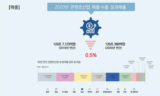 ¹®ÈüÀ°°ü±¤ºÎ¿Í Çѱ¹ÄÜÅÙÃ÷ÁøÈï¿øÀº ÀÛ³â ÇÏ¹Ý±â ¹× ¿¬°£ ÄÜÅÙÃ÷»ê¾÷ µ¿ÇâºÐ¼®º¸°í¼¸¦ ¹ß°£Çß´Ù. 11°³ ÄÜÅÙÃ÷ ºÐ¾ßÀÇ 2020³â ÇÏ¹Ý±â ¹× ¿¬°£ ÁÖ¿ä µ¿Ç⠺м®ÀÌ º» ÀÚ·á¿¡´Â ´ã°Ü ÀÖÀ¸¸ç, »ç¾÷ü 2815°³»ç ´ë»ó ½ÇÅÂÁ¶»çÀÇ °á°ú¿Í 137°³ »óÀå»ç ÀÚ·á ºÐ¼®À» ÅëÇØ ¸ÅÃâ, ¼öÃâ µî ÁÖ¿ä »ê¾÷±Ô¸ð¸¦ ÃßÁ¤Çß´Ù. ÀÌ¿¡ µû¸£¸é À۳⠱¹³» ÄÜÅÙÃ÷»ê¾÷ÀÇ ¿¬°£ ¸ÅÃâ¾×Àº 126Á¶ ¿øÀ¸·Î Áý°èµÇ°í ÀÖ´Ù.