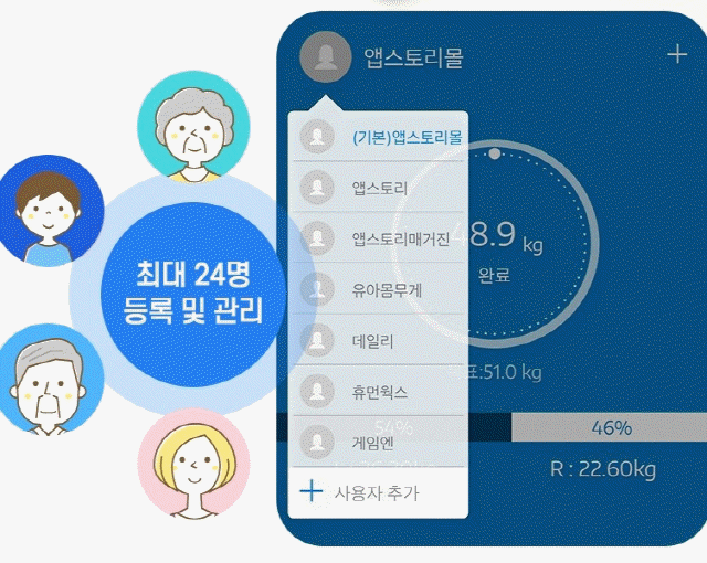 ÀÌ Á¦Ç°Àº ´Ü¼øÈ÷ üÁßÀº ¹°·Ð üÁö¹æ, ¹ë·±½º µî ´Ù¾çÇÑ ¼öÄ¡¸¦ ÇÑ ¹ø¿¡ È®ÀÎÇÏ°í ±â·ÏÇÒ ¼ö ÀÖ´Â ½º¸¶Æ® üÁß°è´Ù. 20°¡ÁöÀÇ Ã¼¼ººÐ ÃøÁ¤ ±â´ÉÀ» °®Ãß°í ÀÖ¾î ¸ö¹«°Ô, ½Åü³ªÀÌ, ºñ¸¸ Á¤µµ, ³»Àå Áö¹æÁö¼ö, ¸öÀÇ ¹ë·±½º, ü¼öºÐÀ², ±ÙÀ°·®, °ñÁú·®, ´Ü¹éÁú, ±âÃÊ´ë»ç·®, üÁö¹æÀ², BMI, üÇü µîÀ» ÇÑ ¹ø¿¡ È®ÀÎÇÒ ¼ö ÀÖ´Ù. üÁ߰踦 ÅëÇØ ÃøÁ¤ÇÑ µ¥ÀÌÅÍ´Â Àü¿ë ¾Û¿¡ ±â·ÏµÇ¾î, ½Ã°£¿¡ µû¸¥ ¼öÄ¡ÀÇ º¯Èµµ È®ÀÎÇÒ ¼ö ÀÖ´Ù.