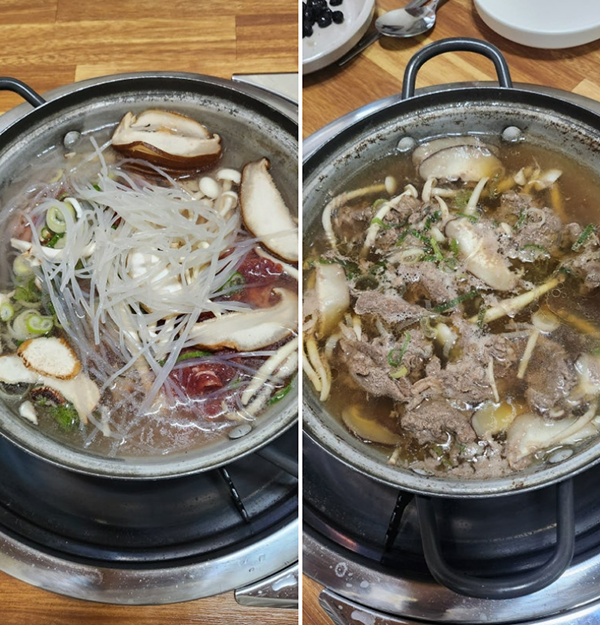 ÀÚ¸®¿¡ ¾É¾Æ 'Â÷µ¹¹ÚÀÌ µÈÀåÂî°³+¶±°¥ºñ' Á¤½Ä°ú 'ºÒ°í±â Àü°ñ'À» ÁÖ¹®ÇÏ´Ï, ¸ÕÀú Á¤°¥ÇÑ ¹Ø¹ÝÂùµéÀÌ ±ò¸°´Ù. È·ÁÇÔº¸´Ù´Â ¼Ò¹ÚÇÔ¿¡ °¡±õÁö¸¸, ¹ÝÂù ÇϳªÇϳª¸¦ ¸Àº¸´Â ¼ø°£ ±× ±íÀº ³»°ø¿¡ °¨ÅºÇÏ°Ô µÈ´Ù. °Ñ¸ð½À¿¡ ºñÇØ ÈξÀ ±í°í ¸À±ò½º·¯¿î ¸ÀÀº ÀÌ ½Ä´ç¿¡ ´ëÇÑ ±â´ë°¨À» ÇѲ¯ ²ø¾î¿Ã¸°´Ù.