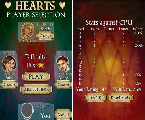 ¡®Hearts Free¡¯´Â ³ª¸¦ Á¦¿ÜÇÑ 3ÀÎÀº CPU °³³äÀÎ ¸ð¹ÙÀÏ °ÔÀÓÀ¸·Î, °íÀüÀûÀÎ ±×·¡ÇÈÀÌ ÀλóÀûÀÎ °ÔÀÓÀÌ´Ù. ±×Àú °ÔÀÓ ÇÑ ÆÇÀÇ °³³äÀÌ ¾Æ´Ï°í ³»°¡ Àß ÇÒ¼ö·Ï °ÔÀÓÀÇ ³À̵µ°¡ ³ô¾ÆÁö´Â, ÀÏÁ¾ÀÇ Ã©ÅÍ È¤Àº ·¹º§ ±â¹ÝÀÇ °ÔÀÓÀ̶ó ÇÒ ¼ö ÀÖ´Ù. ³ôÀº ·¹º§¿¡ ¿À¸¦¼ö·Ï ½Â·üÀÌ ³·¾ÆÁö´Â °ÍÀº ´ç¿¬ÇÏÁö¸¸, ±× ¿ÍÁß¿¡ ½Â¸®¸¦ µû³ÂÀ» ¶§ÀÇ Èñ¿ ¿ª½Ã Â¥¸´ÇÏ´Ù.