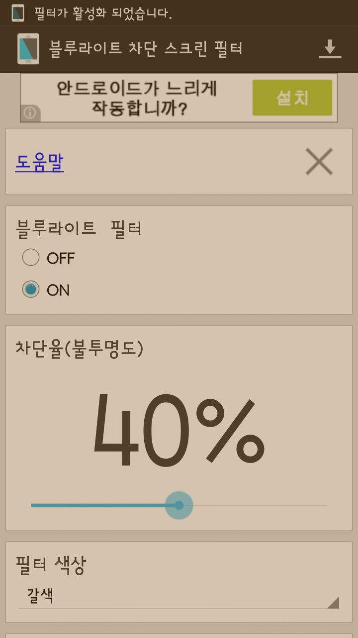 ´«¿¡ ÇǷθ¦ ÁÖ´Â ºí·ç¶óÀÌÆ® Çö»óÀ» Â÷´ÜÇØ ÁÖ´Â ¾ÛÀÌ´Ù. Àå½Ã°£ ½º¸¶Æ®ÆùÀÇ »ç¿ëÀ¸·Î ´«ÀÌ ½±°Ô ÇÇ·ÎÇØÁö´Â Çö»óÀ» ºí·ç¶óÀÌÆ® ¹æÁö ¾È°æÀ̳ª Çʸ§ ¾øÀ̵µ ÀÌÁ¨ ÇØ°áÇÒ ¼ö ÀÖ´Ù. ´«¿¡ ÇǷΰ¡ ´úÇϰí ÀÚ¿¬½º·¯¿î ¾Ï°¥»ö ÇÊÅ͸¦ »ç¿ëÇÏ¿´°í ´Ù¼¸ °¡Áö »ö»óÀÇ ÇÊÅÍ·Î Á¶Àý °¡´ÉÇÏ´Ù. ȸéÀÇ »ö»óÀ̳ª ³óµµ¸¸À» Á¶ÀýÇÏ´Â °¡º¿î ±â´ÉÀ¸·Î ¹èÅ͸® »ç¿ëÀÌ Àû°í, ´Ù¸¥ ¾ÛÀ» ½ÇÇàÇϱ⿡µµ ¹®Á¦°¡ ¾ø´Ù.
