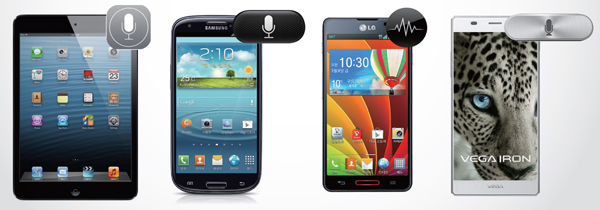 ¡ØÀ̹ø À½¼ºÀÎ½Ä ºñ±³¸¦ À§ÇØ ÁغñµÈ ±â±â´Â ¾ÖÇà ¾ÆÀÌÆÐµå ¹Ì´Ï(iOS7 º£Å¸6 ¹öÀü), »ï¼º °¶·°½ÃS3, LG ¿ÉƼ¸Ó½º LTE3, ÆÒÅà º£°¡¾ÆÀ̾ðÀÌ¸ç °¢ Á¦Á¶»çÀÇ À½¼ºÀÎ½Ä ¼ºñ½º ¸íĪÀº ¾ÖÇà - ½Ã¸®, »ï¼º - Sº¸À̽º, LG - Qº¸À̽º, ÆÒÅà - ½º¸¶Æ®º¸À̽ºÀÌ´Ù.
