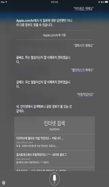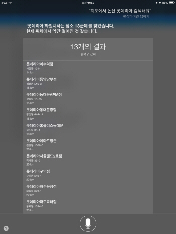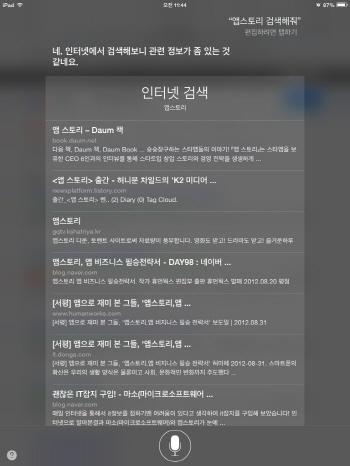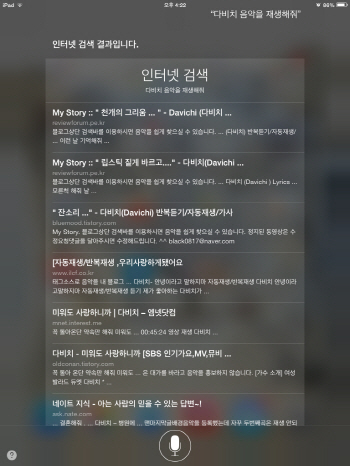 ÀϹÝÀûÀÎ ´Ü¾î¿¡ ´ëÇÑ °Ë»ö ´É·ÂÀº iOS¸¦ ¹ÙÅÁÀ¸·Î ÇÏ´Â ½Ã¸®¿Í ¾Èµå·ÎÀÌµå ¹öÀü°£ÀÇ Â÷À̰¡ ³ªÅ¸³µ´Ù. iOS7 ¹öÀüÀÇ ½Ã¸®´Â À½¼º ¸í·É È¸é ¾Æ¿¡¼ °£·«ÇÑ °Ë»ö °á°ú¸¦ º¸¿©Áà ÆíÀǼºÀÌ ³ôÁö¸¸ ³ª¸ÓÁö 3°³ÀÇ À½¼ºÁö¿ø ¼ºñ½º´Â À¥À¸·Î ¿¬°áÇØ¾ß¸¸ °Ë»ö °á°ú¸¦ º¼ ¼ö ÀÖ´Ù´Â ¹ø°Å·Î¿òÀÌ ÀÖ´Ù.