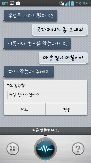 ¡ã ½Ã¸®: ¸í·ÉÀÌ ½ÇÇàµÇ´Â ¼Óµµ°¡ ´À¸®±â´Â ÇÏÁö¸¸, ¡®¸Þ½ÃÁö¡¯¶ó´Â ´Ü¾î°¡ À½¼º¿¡ Æ÷ÇԵǸé ÀçÄ¡ÀÖ°Ô ¸í·ÉÀ» ¼öÇàÇϰí ÁøÇà °úÁ¤µµ °£´ÜÇÏ´Ù.