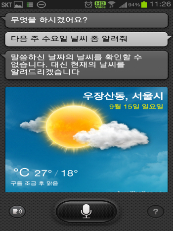 ¡ã ½º¸¶Æ®º¸À̽º: ƯÁ¤ ³¯Â¥ÀÇ ³¯¾¾¸¦ È®ÀÎÇØ´Þ¶ó´Â ¸í·É¿¡ ´ëÇØ Á¤È®È÷ ±×³¯ÀÇ ³¯¾¾ Á¤º¸¸¦ ¾Ë·ÁÁØ´Ù.