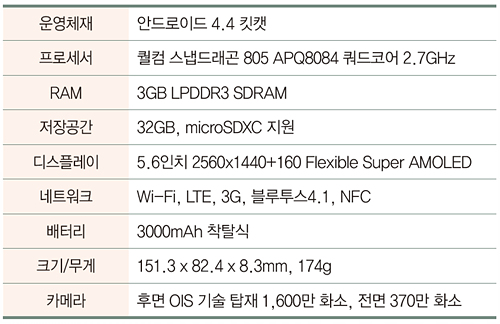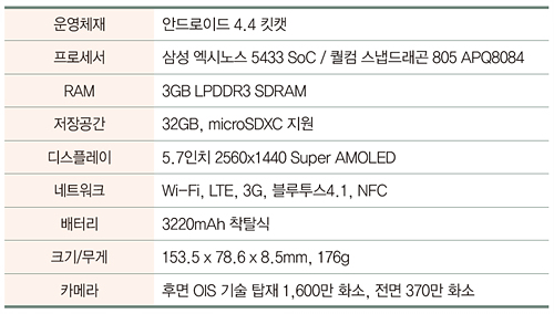 ÀÌ Á¦Ç°ÀÇ ¼º´ÉÀº Áö±Ý±îÁö Ãâ½ÃµÈ ¾î¶² ½º¸¶Æ®Æùº¸´Ùµµ °·ÂÇÏ´Ù. AP´Â »ï¼º ¿¢½Ã³ë½º5433(64ºñÆ® Áö¿ø)°ú Ä÷ÄÄ ½º³Àµå·¡°ï 805 APQ8084(64ºñÆ® ¹ÌÁö¿ø)¸¦ Áö¿ª¿¡ µû¶ó ´Þ¸® Ãâ½ÃÇÒ ¿¹Á¤À̸ç, ·¥Àº 3GB¸¦ äÅÃÇß´Ù. ±âº» žÀç OS´Â °¡Àå ÃֽйöÀüÀÇ ¾Èµå·ÎÀ̵åÀÎ 4.4 ŶĹÀ̸ç, UI´Â »ï¼º ÅÍÄ¡À§Áî7.0ÀÌ »ç¿ëµÆ´Ù. Áö¿ø LTE ·¹º§Àº Cat.6. ´Ù¿î·Îµå´Â ÃÖ´ë 300Mbps, ¾÷·Îµå´Â ÃÖ´ë 50Mbps±îÁö °¡´ÉÇϸç, 40MHz ´ë¿ªÆøÀÇ ±¤´ë¿ªÀÌ ±¸ÃàµÈ LTE¸Á¿¡¼ ÀÌ¿ëÇÒ ¼ö ÀÖ´Ù. ³ëÆ® ½Ã¸®ÁîÀÇ ¾ÆÀ̵§Æ¼Æ¼ÀÎ SÆæÀº ÇʾÐÀÌ ³ëÆ®3 ´ëºñ 2¹è Áõ°¡ÇßÀ¸¸ç ±â´ÉÀÌ ´ëÆø Çâ»óµÅ ¸¶¿ì½º¿¡ ÁØÇÏ´Â ±â´ÉÀ» ¼öÇàÇÒ ¼ö ÀÖÀ» °ÍÀ¸·Î À̾߱âµÇ°í ÀÖ´Ù.