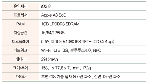 ·ç¸Ó´ë·Î ´ëÇü µð½ºÇ÷¹À̸¦ žÀçÇÏ°í ³ª¿Â ¾ÆÀÌÆù6 PlusÁö¸¸, ·ç¸Óó·³ ÀÌ Á¦Ç°ÀÌ ¾ÆÀÌÆù6ÀÇ »óÀ§ Á¦Ç°Àº ¾Æ´Ï´Ù. µÎ Á¦Ç°Àº °°Àº AP¸¦ žÀçÇϰí ÀÖÀ¸¸ç, ·¥ ¿ª½Ã 1GB·Î µ¿ÀÏÇÏ´Ù. Àüü ¿Ü°üµµ µÎ Á¦Ç°Àº Å©±â ¿Ü¿¡´Â Â÷ÀÌÁ¡ÀÌ ¾ø´Ù.