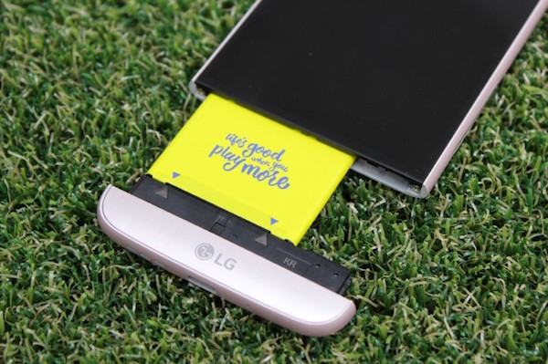 G5 ¿ª½Ã ¹èÅ͸® ±³Ã¼°¡ °¡´ÉÇÏ´Ù. ƯÈ÷ ÀÌ ±³Ã¼ ¹æ½ÄÀÌ ¹«Ã´ »õ·Î¿öÁ³´Âµ¥ Èĸé Ä¿¹ö µîÀ» ¿¾î ¹èÅ͸®¸¦ ±³Ã¼ÇÏ´Â ÀϹÝÀûÀÎ ¹æ½ÄÀÌ ¾Æ´Ï¶ó, ±â±â ¹Ø ºÎºÐÀ» ºÐ¸®ÇØ ¹èÅ͸®¸¦ ±³Ã¼ÇÏ´Â ¹æ½ÄÀ» Àû¿ëÇÑ °ÍÀÌ´Ù. ¹èÅ͸® ¿ë·®Àº 2,800mAh, ¿¬¼Ó´ë±â ½Ã°£Àº ¾à 118½Ã°£ÀÌ¸ç ¿©±â¿¡ 10ºÐ ÃæÀüÀ¸·Î ÃÖ´ë 4½Ã°£ »ç¿ëÇÒ ¼ö ÀÖ´Â °í¼Ó ÃæÀü ±â´ÉÀ» Áö¿øÇÑ´Ù. ¹èÅ͸® ±³Ã¼ °¡´ÉÇÑ ½º¸¶Æ®ÆùÀÓ¿¡µµ ºÒ±¸ÇÏ°í ±¸¼ºÇ°¿¡ Ãß°¡ ¹èÅ͸®°¡ Æ÷ÇԵǾî ÀÖÁö ¾ÊÀº Á¡Àº ¾Æ½±Áö¸¸, Ãʱ⠱¸¸Å °í°´¿¡°Ô´Â Ä· Ç÷¯½º ¸ðµâ°ú ÇÔ²² Ãß°¡ ¹èÅ͸®ÆÑÀ» ÇÔ²² ÁõÁ¤ÇÑ´Ù°í ÇÏ´Ï ±×³ª¸¶ À§¾ÈÀÌ µÈ´Ù.