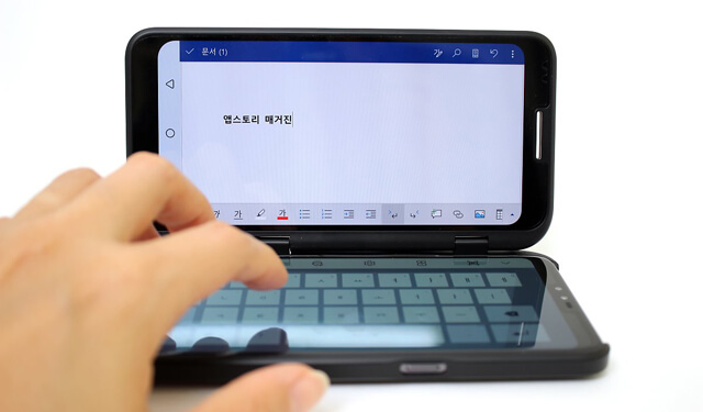 ±×·¯³ª °¡·Î ¸ðµå¿Í µà¾ó½ºÅ©¸°À» Á» ´õ Ȱ¿ëÇÏ¸é ³ëÆ®ºÏ ºÎ·´Áö ¾ÊÀº ȯ°æÀÌ Á¶¼ºµÈ´Ù. ¿ì¼± µà¾ó½ºÅ©¸° »ó¿¡¼ Űº¸µå ÀÛ¾÷ÇÒ ¾ÛÀ» ½ÇÇàÇϰí Űº¸µå¸¦ Ȱ¼ºÈ½ÃŲ´Ù. ±×¸®°í Űº¸µå »ó´Ü¿¡ ÀÖ´Â ½º¸¶Æ® µµ±¸ ³» ¡®µà¾ó Űº¸µå¡¯ ¾ÆÀÌÄÜÀ» ´·¯ÁÖ¸é ¸ÞÀÎ ½ºÅ©¸°¿¡ Űº¸µå°¡ Àüü ȸéÀ¸·Î È®ÀåµÈ´Ù. µà¾ó½ºÅ©¸°Àº µð½ºÇ÷¹ÀÌ·Î, ¸ÞÀÎ ½ºÅ©¸°Àº Űº¸µå·Î Ȱ¿ëÇÒ ¼ö ÀÖ°Ô µÇ´Â °ÍÀÌ´Ù. °¢µµ¸¦ »ç¿ëÀÚ°¡ ¿øÇÏ´Â ´ë·Î Á¶ÀýÇÒ ¼ö ¾ø´Ù´Â °Ô ÈìÀ̱ä ÇÏÁö¸¸, ³ª¸§ ¾µ ¸¸ÇÏ´Ù. Ȥ½Ã¶óµµ µà¾ó Űº¸µå ¾ÆÀÌÄÜÀÌ º¸ÀÌÁö ¾Ê´Â´Ù¸é Űº¸µå ¼³Á¤¿¡¼ ¡®½º¸¶Æ® µµ±¸¡¯¸¦ Ȱ¼ºÈÇÏ¸é µÈ´Ù.