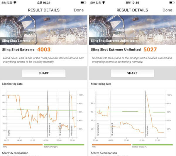 ¾ÆÀÌÆùSE´Â ¾ÖÇÃÀÇ ÃֽŠAPÀÎ A13 ¹ÙÀÌ¿À´Ð ĨÀ» žÀçÇß´Ù. ¾ÆÀÌÆù11 ½Ã¸®Áî¿¡ Àû¿ëµÈ AP¿Í µ¿ÀÏÇÏ´Ù. À¸·¹ º¸±ÞÇü ½º¸¶Æ®ÆùÀÇ °¡°ÝÀ» °®ÃèÁö¸¸ AP´Â Ç÷¡±×½Ê±ÞÀÌ´Ù. ·¥ ¿ë·®Àº 3GB, ÀúÀå°ø°£Àº 64/128/256GB´Ù. ÇÁ·Î¼¼¼ ¼º´ÉÀ» È®ÀÎÇÒ ¼ö ÀÖ´Â Geekbench5ÀÇ Å×½ºÆ®¿¡¼ 1,340Á¡ÀÇ ½Ì±ÛÄÚ¾î ½ºÄÚ¾î¿Í 3,147Á¡ÀÇ ¸ÖƼÄÚ¾î ½ºÄھ ±â·ÏÇß´Ù. GPU ¼º´ÉÀ» È®ÀÎÇÏ´Â Geekbench5ÀÇ compute Score´Â 6,388Á¡À¸·Î ½ÇÁ¦·Î ¾ÆÀÌÆù11ÀÇ Á¡¼ö¿Í °°¾Ò´Ù. ½Ã½ºÅÛ Àü¹ÝÀûÀÎ ¼º´ÉÀ» ÃøÁ¤ÇÏ´Â Antutu¿¡¼´Â 475,293Á¡À» ±â·ÏÇß´Ù. 3D ±×·¡ÇÈÀ» ÅëÇØ GPU ¹× CPU ¼º´ÉÀ» ¾Ë¾Æº¸´Â 3D MarkÀÇ Sling Shot Å×½ºÆ®¿¡¼´Â Sling Shot ExtremeÀÌ 4,013Á¡À» ±â·ÏÇßÀ¸¸ç, OffscreenÀ¸·Î ÁøÇàµÇ´Â Sling Shot Extreme Unlimited°¡ 5,027Á¡À̾ú´Ù.