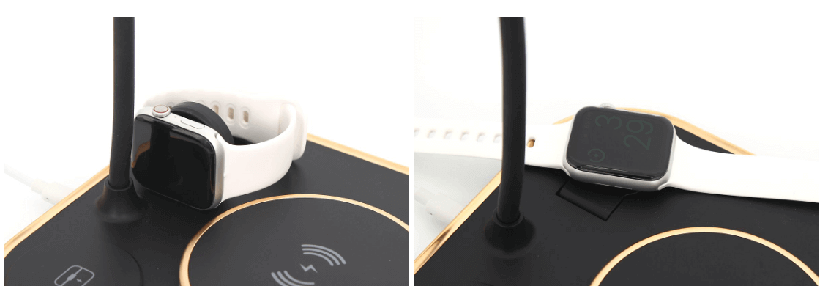 ¿À¸¥ÂÊÀÇ ÃæÀüºÎ´Â ½º¸¶Æ®¿öÄ¡ ÃæÀüºÎ·Î, ¾ÖÇÿöÄ¡¸¦ ÃæÀüÇϱâ À§ÇÑ ÀåÄ¡ÀÌ´Ù. ÀÌ ºÎºÐÀº ´Ù¸¥ ÃæÀüºÎ¿Í´Â ´Þ¸® ¼öÁ÷À¸·Î ¼¼¿ï ¼ö ÀÖ´Â ±¸Á¶·Î µÇ¾îÀÖ´Ù. ½º¸¶Æ®¿öÄ¡ ÃæÀüºÎ´Â 3WÀÇ Ãâ·ÂÀ» Áö¿øÇÑ´Ù.
