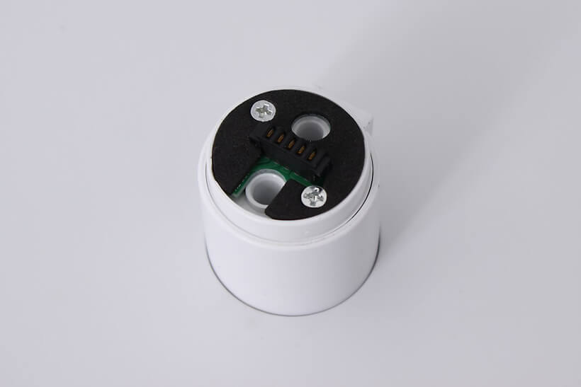 º£À̽ºÀÇ À¸é¿¡´Â µÎ °³ÀÇ ±¸¸Û »çÀÌ¿¡ ¿¬°á´ÜÀÚ°¡ ÀÖ°í, Áß°£ ±âµÕÀÇ ³¡ºÎºÐ¿¡´Â µ¹ÃâµÈ µÎ °³ÀÇ ±Ý¼ÓºÀ »çÀÌ¿¡ ¿¬°áÇÉÀÌ ÀÚ¸® Àâ°í ÀÖ´Ù.