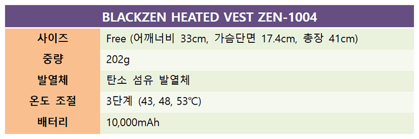 ºí·¢Á¨ ¹ß¿Á¶³¢ ZEN-1004´Â °Ñº¸±â ÀÌ»óÀÇ ¿Ï¼ºµµ¸¦ Áö³æ´Ù. 99% ź¼Ò ¼¶À¯·Î ±¸¼ºµÈ ƯÇã¹ÞÀº ģȯ°æ ¹ß¿Ã¼´Â ¿À» °í¸£°Ô ºÐ»ê½ÃÄÑ ±¹ºÎ °ú¿ ¾øÀÌ ¾ÈÁ¤ÀûÀΠü¿Â À¯Áö¸¦ µ½°í, ¼¼Å¹ ÈÄ¿¡µµ º¯Çü ¾øÀÌ »ç¿ëÇÒ ¼ö ÀÖ´Ù. ¶ÇÇÑ ¿øÅÍÄ¡ 3´Ü ¿Âµµ Á¶Àý ±â´É°ú º¸Á¶¹èÅ͸® Àü¿ë Æ÷ÄÏ, ¹ú¾îÁü ¹æÁö º§Æ® µî ¼¼½ÉÇÑ ¼³°è´Â ½Ç»ç¿ë ÆíÀǼºÀ» ÇÑÃþ ³ô¿´´Ù. ¹«¾ùº¸´Ù 100% ±¹³» »ý»êÀ» ÅëÇØ ǰÁú°ú ¾ÈÀü¼º ¸é¿¡¼ ½Å·Ú¸¦ ´õÇß´Ù. ´Ü¼øÇÑ ¹æÇѺ¹À» ³Ñ¾î, ºí·¢Á¨ ZEN-1004´Â ÇÏ·ç Á¾ÀÏ µû¶æÇÏ°í ¾ÈÀüÇÑ º¸¿ÂÀ» ¿øÇÏ´Â »ç¿ëÀÚ¿¡°Ô ½ÇÁúÀûÀÎ ÇØ´äÀÌ µÉ °ÍÀÌ´Ù.