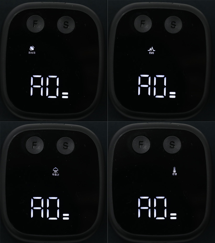 Ä¿½ºÅÒ ¸ðµå¿¡¼ F ¹öưÀ» ´©¸£¸é ±â´ÉÀ» ¼±ÅÃÇÒ ¼ö ÀÖ´Ù. ±â´ÉÀº °ø±â¾Ð ¸¶»çÁö¿Í EMS ¸¶»çÁö, ±ÙÀû¿Ü¼± Á¶»ç, ¿Â¿ ±â´É µî ³× °¡ÁöÀÌ´Ù.