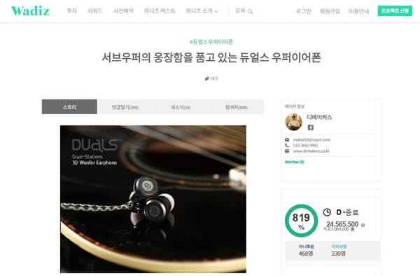 µà¾ó½º ¿ìÆÛ À̾îÆùÀÌ Ã³À½À¸·Î ¼±º¸¿©Áø °÷Àº ±¹³» Å©¶ó¿ìµå ÆÝµù »çÀÌÆ®ÀÎ ¿ÍµðÁî·Î, ÆÝµùÀº Áö³ 2¿ù 18ÀϺÎÅÍ 3¿ù 17ÀϱîÁö ÁøÇàµÇ¾ú´Ù. ´ç½Ã ¸ñÇ¥±Ý¾× ´ëºñ 839%ÀÇ ³ôÀº ´Þ¼º·üÀ» ±â·ÏÇßÀ¸¸ç ÆÝµù Âü¿©ÀÚ´Â ÃÑ 719¸íÀ» ±â·ÏÇÑ ¹Ù ÀÖ´Ù.