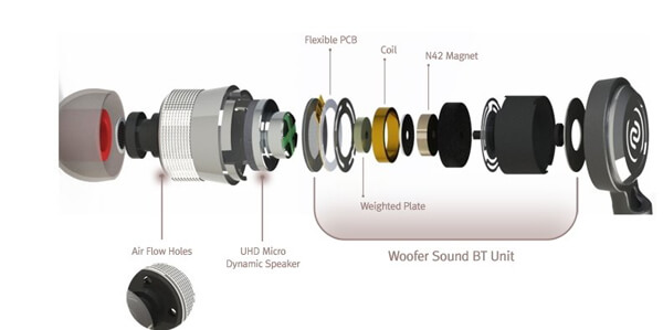 ƯÈ÷ ¿ìÆÛ À̾îÆùÀº °ø±â Àüµµ(Air-Conduction) ¹æ½Ä°ú »À Àüµµ(Bone-Conduction) ¹æ½ÄÀ¸·Î ÀÌ·ç¾îÁø À¶ÇÕ ±â¼úÀÌ Àû¿ëµÇ¾î, Ä¿³ÎÇü À̾îÆùÀÓ¿¡µµ ºÒ±¸ÇÏ°í ±Í¸¦ ¸·´Â ´ä´äÇÑ ´À³¦À» ÃÖ¼ÒÈÇß´Ù. °ø±â Àüµµ ¹æ½ÄÀº °ø±â Áøµ¿À» ¿ÜÀ̵µ, ÁßÀÌ, ³»ÀÌ·Î Àü´ÞÇÏ´Â ÇüÅÂÀ̸ç, °ñÀüµµ ¹æ½ÄÀº ±Í ÁÖº¯ÀÇ »À, ¿¬°ñ, ÇǺθ¦ ÅëÇØ ´ÞÆØÀ̰üÀ¸·Î Àü´ÞÇÏ´Â ¹æ¹ýÀÌ´Ù.